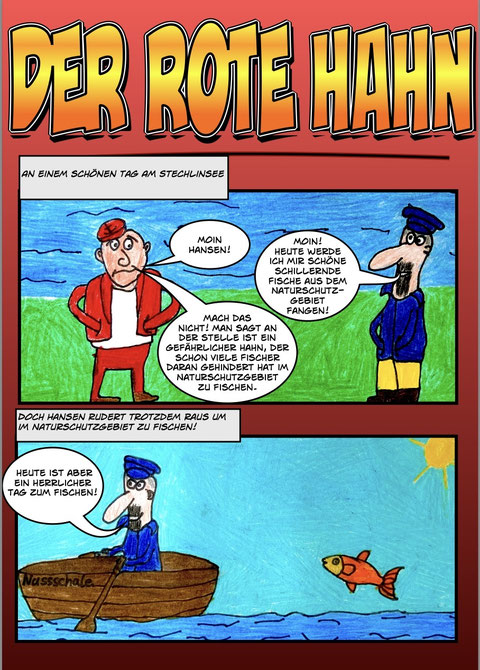 Die erste Seite des Comics vom "Roten Hahn" von Felix und Jan:
