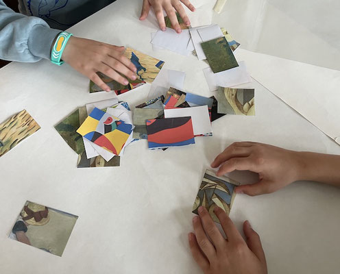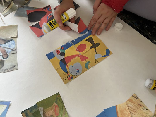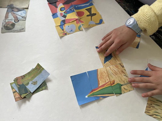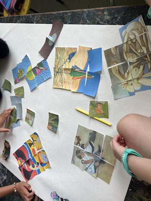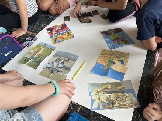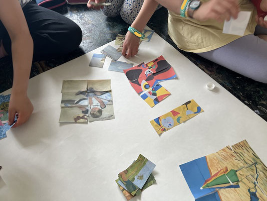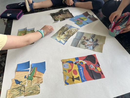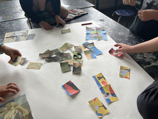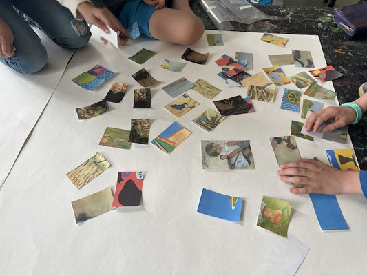 Wie immer geht es mir gar nicht darum, dass die Kinder die Künstlerinnnen kennen oder diese sich gar merken, sondern um einen Bilderpool von Kunstwerken, der im Kunstunterricht aufgefüllt wird und vielleicht ein Interesse oder eine Emotion weckt oder irgendwann ein Wiedererkennen möglich macht . Am Ende der Stunde gab es sogar Tränen und Streit um ein Lieblingsbild. Aber ich hatte zum Glück noch ein unzerschnittenes "Original" parat.
