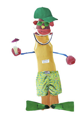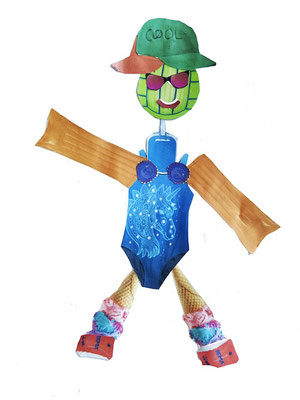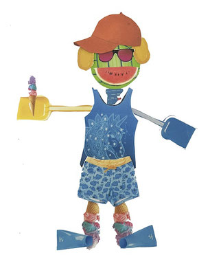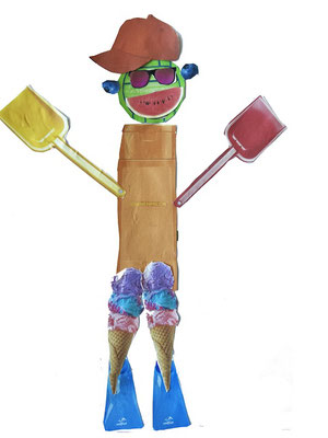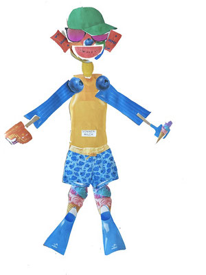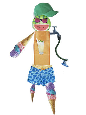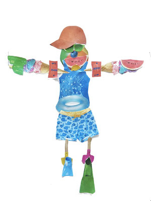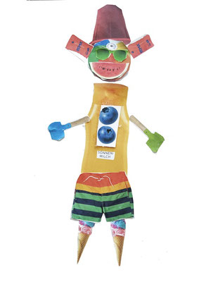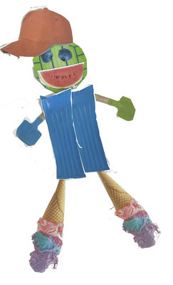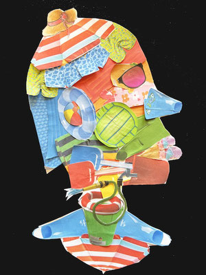 A. Der Kopf wurde vorgezeichnet und mit Sommersachen gefüllt. (Die ersten drei Bilder)