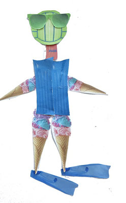 Teilweise könnt ihr oben schon Bilder sehen, bei denen die Kinder die kleine Eiswaffeltüte als Vorlage gehabt haben (Tipi, Stoßzähne, Ohren, Sonne, ...), da kommen wieder ganz andere Bildideen auf.