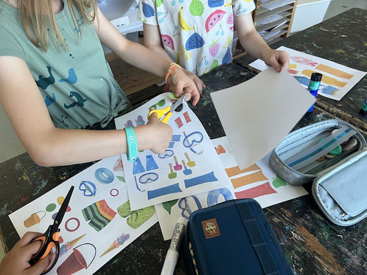 Sie dürfen malen, zeichnen, kleben, collagieren, schneiden, mit Schrift gestalten, in 3D arbeiten....wie sie möchten.