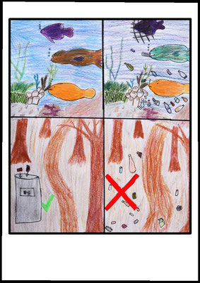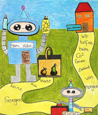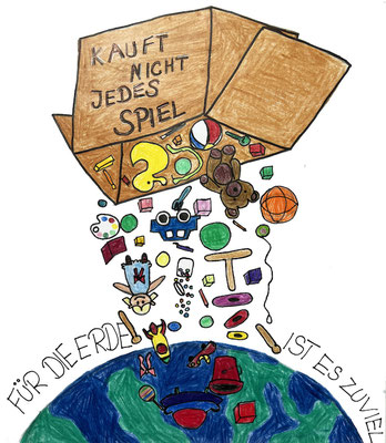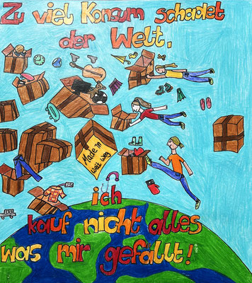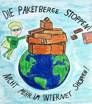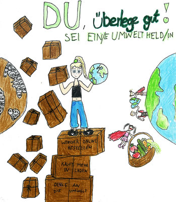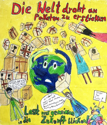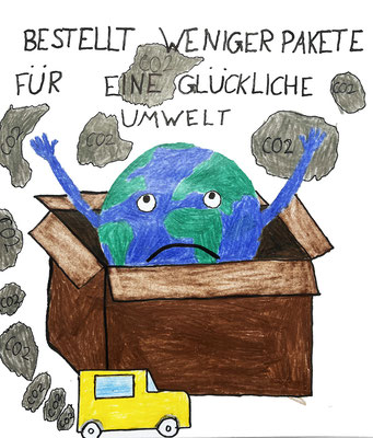 Den Kinder ist der Zusammenhang beim Einkauf von zu viel Verpackung und Umweltverschmutzung durchaus bewusst. Auch die extrem zugenommen Onlinebestellung von Produkten wurde hinterfragt und beschäftigt die Kinder sehr. Lediglich die gestalterische Umsetzung der Ideen war diesmal sehr schwierig.