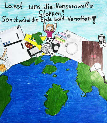 Den Kindern wird so eine Plattform gegeben, ihre Sorgen und Wünsche für eine bessere Zukunft in einem Plakat mitzuteilen. Im Unterricht ergeben sich immer zahlreiche tiefgehende Gespräche zum Thema Umwelt.