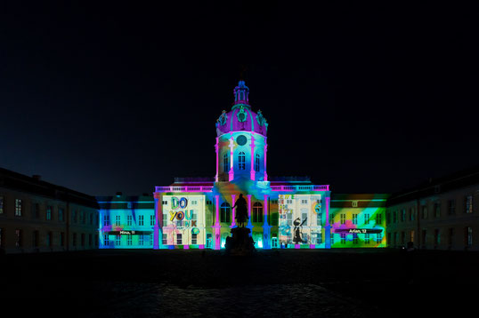 aus dem diesjährigen Wettbewerb an das Schloss Chatlottenburg projiziert..